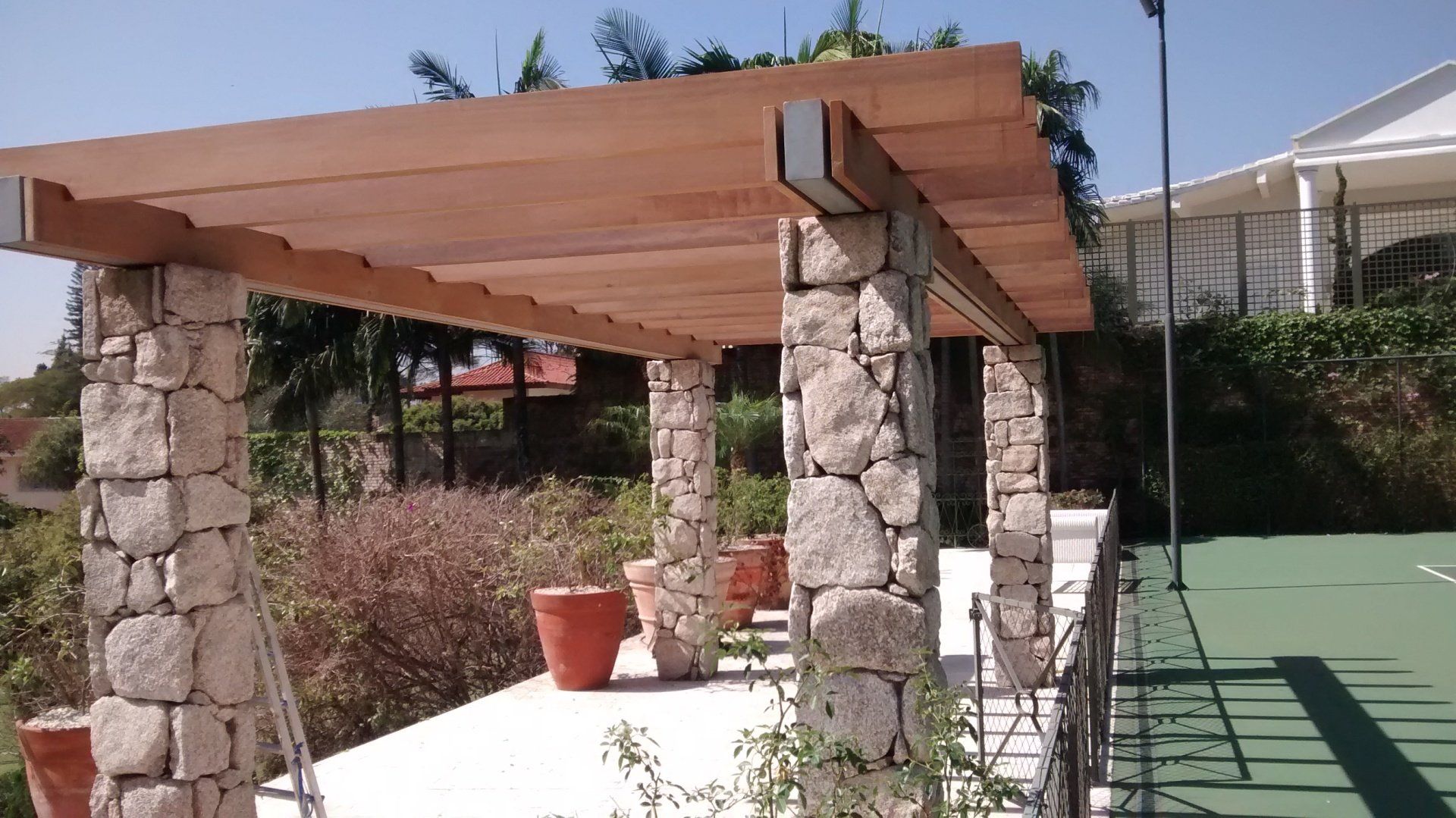 Pode ser construído de eucalipto autoclavado, garapeira, cumaru, jatobá, freijó, entre outros.
